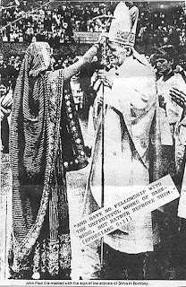 Em 1998 outra noticia: O Papa João Paulo II permitiu que uma sacerdotisa hindu fizesse a tradicional marca de Shiva (ou Xiva) em sua fronte. Logicamente, esse evento chama a atenção de qualquer pessoa que creia nas profecias bíblicas. No livro do Apocalipse, o Falso Profeta, o líder da nova religião global do Anticristo, faz os habitantes do mundo aceitar uma marca, ou na fronte, ou na mão direita. Portanto, é um fato importante quando uma sacerdotisa pagã faz uma marca na fronte do Papa!