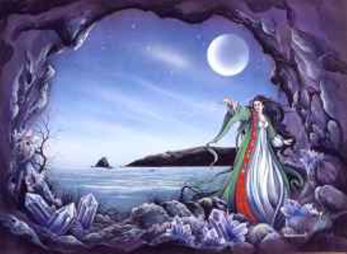 Após uma breve saudação carregada de poder, a Deusa voltou Seus olhos para o Oeste, mostrando ao Deus Azevinho a direção que Ele deveria tomar. Não se podia ver nada além de um caminho tortuoso que terminava em escuridão. “Por que eu deveria ir?”, perguntou Ele. “Os tempos devem mudar”, respondeu a Deusa, “e aqueles que um dia governaram devem ceder lugar à nova vida, para que o equilíbrio no mundo seja restabelecido. Você sabe disso tão bem quanto Eu.”