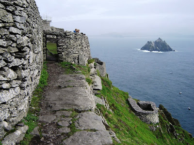 Traduzido da língua irlandesa Skellig Michael significa "A Rocha de Michael", que se constitui numa ilha rochosa íngreme onde no seu ponto mais alto, a uma altitude de 230 metros, existe até hoje um antigo mosteiro fundado no século 7 por monges cristãos. Por mais de 500 anos eles viveram na ilha em celas de pedra, situadas ao longo das paredes verticais da rocha, totalmente isolados do mundo exterior. O único problema eram o Vikings, que de vez em quando invadiam o mosteiro.